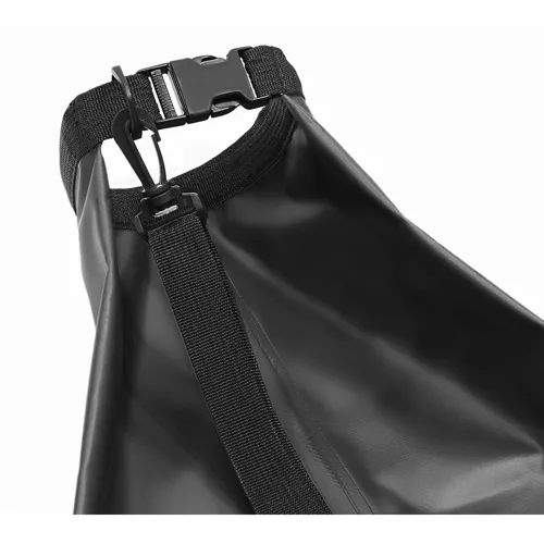 - SPECYFIKACJA – kolor: czarny; materiał: PVC; pozostałe: poliester + PP; wymiary worka: 29,5 x 51,5 cm; wymiary zewnętrzne: 41,5 x 54 cm; regulowany pasek: 55-105 cm; waga: 0,292 kg; waga w opakowaniu: 0,326 kg.